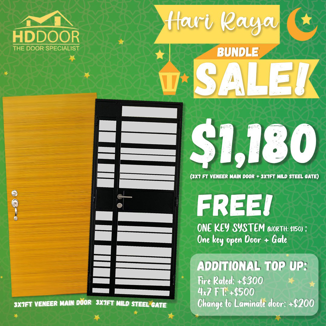 * 3x7Ft Veneer Main Door + 3x7Ft Mild Steel Gate – $1180