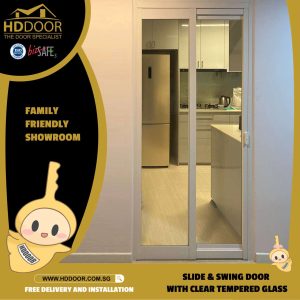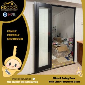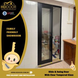 Overall, the HDB Aluminum Slide & Swing Glass Door offers a range of benefits for Singaporean homes, including modern and stylish design, space-saving functionality, natural light, low maintenance, durability, safety, customizability, and versatility.