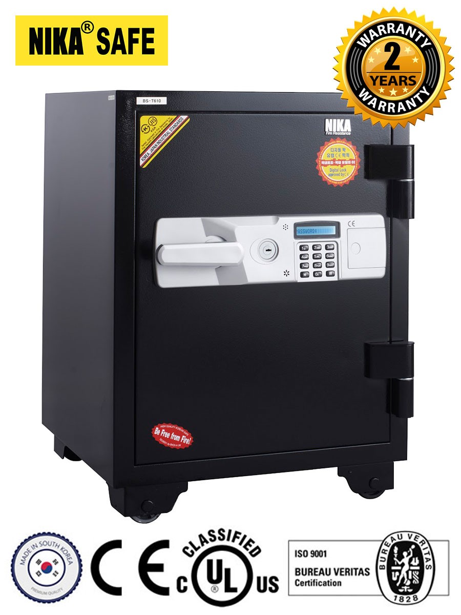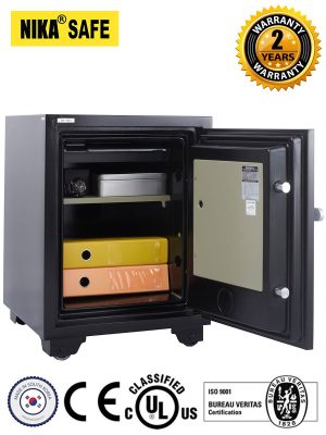 - Electronic keypad + Key to open the safe